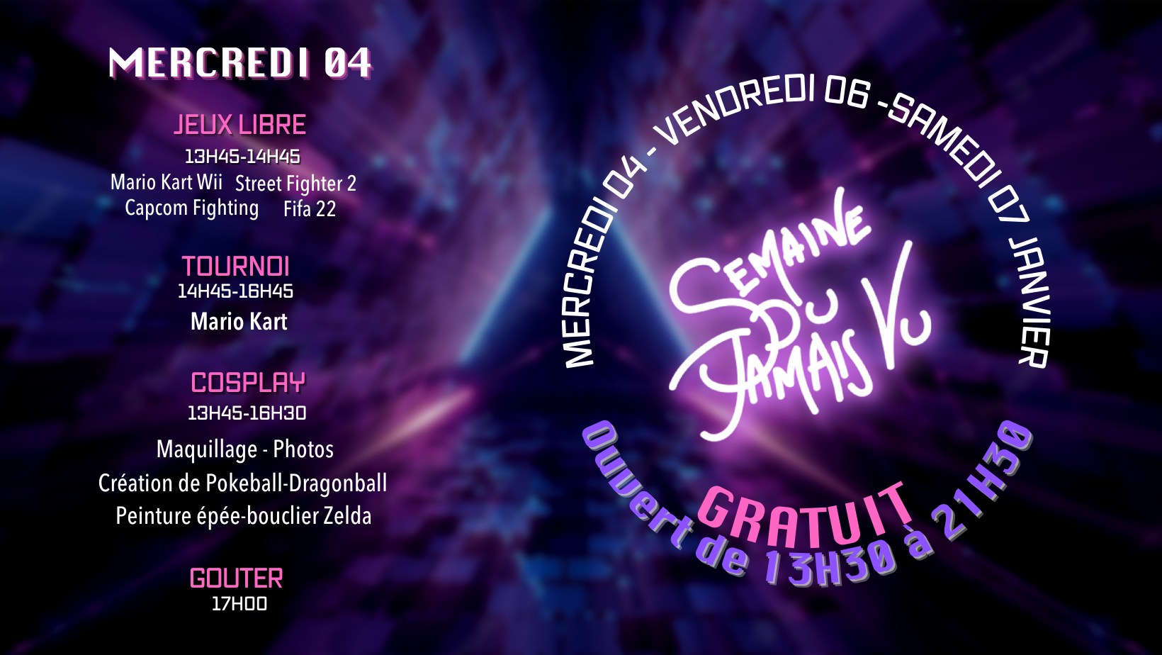 La Passerelle Negreneys - 4 janvier 2023L’événement du mercredi 4 janvier tourne autour des jeux vidéo et cosplay.